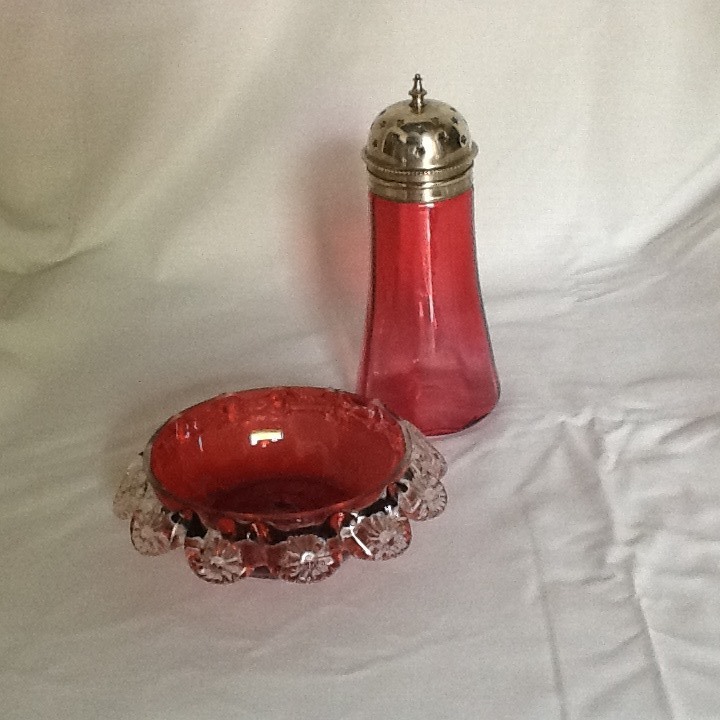 Victorian Cranberry Glass Sugar Shaker & Bowl