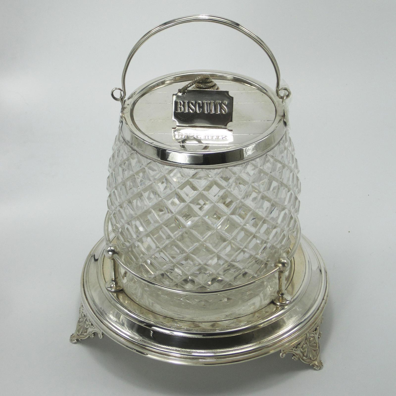 Victorian Cut Glass & Silver Plated Biscuit Barrel on Stand