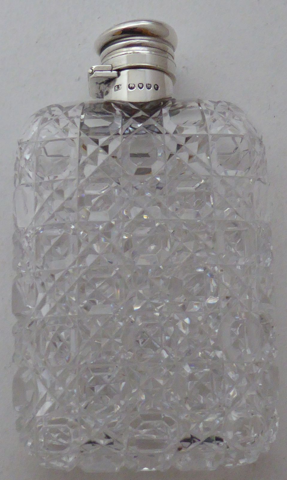Victorian Cut Glass & Solid Hallmarked Silver Hip Flask 1887 Sampson Mordan