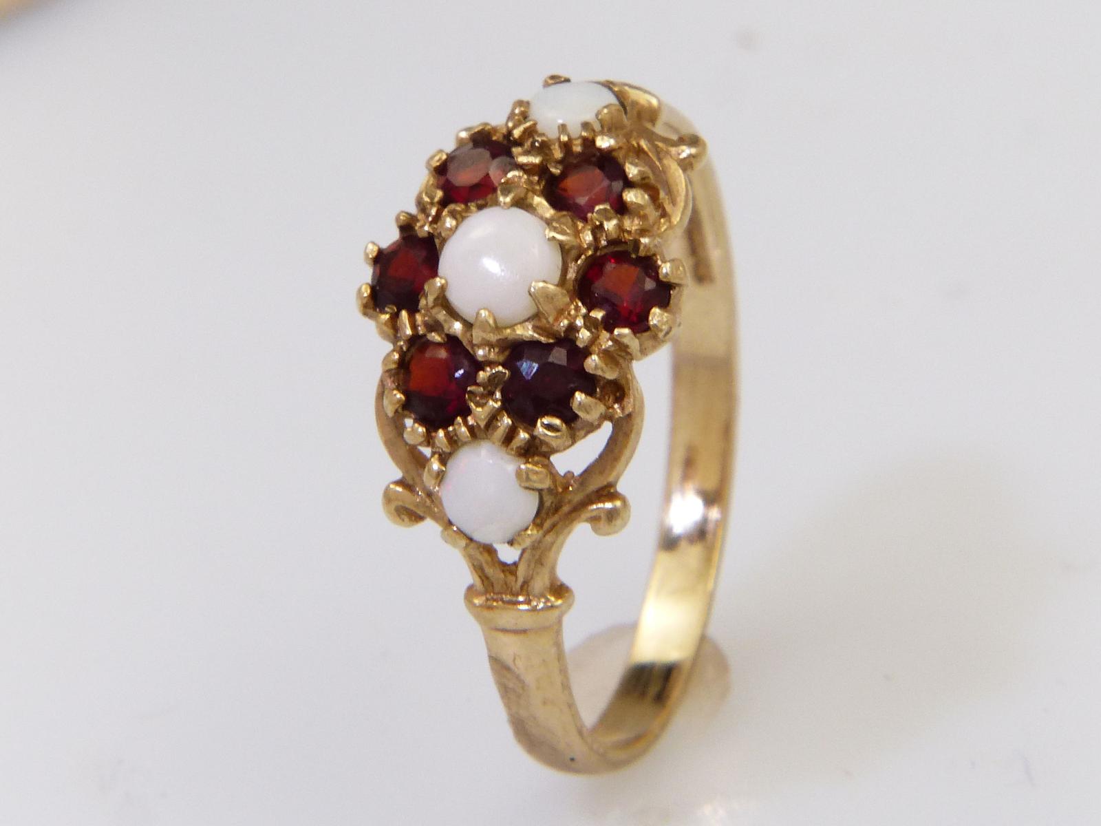 Victorian Daisy Gold Ring with Garnet & Opal 9ct