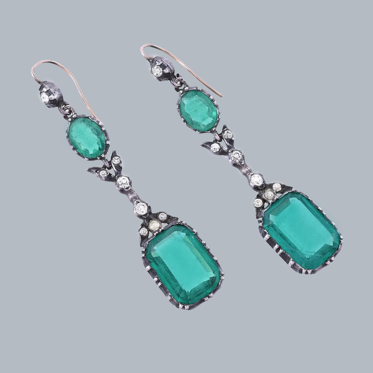 Victorian Dangle Earrings Gold and Silver Antique Hook Drop Emerald  Green Crystal Earrings (1 of 5)