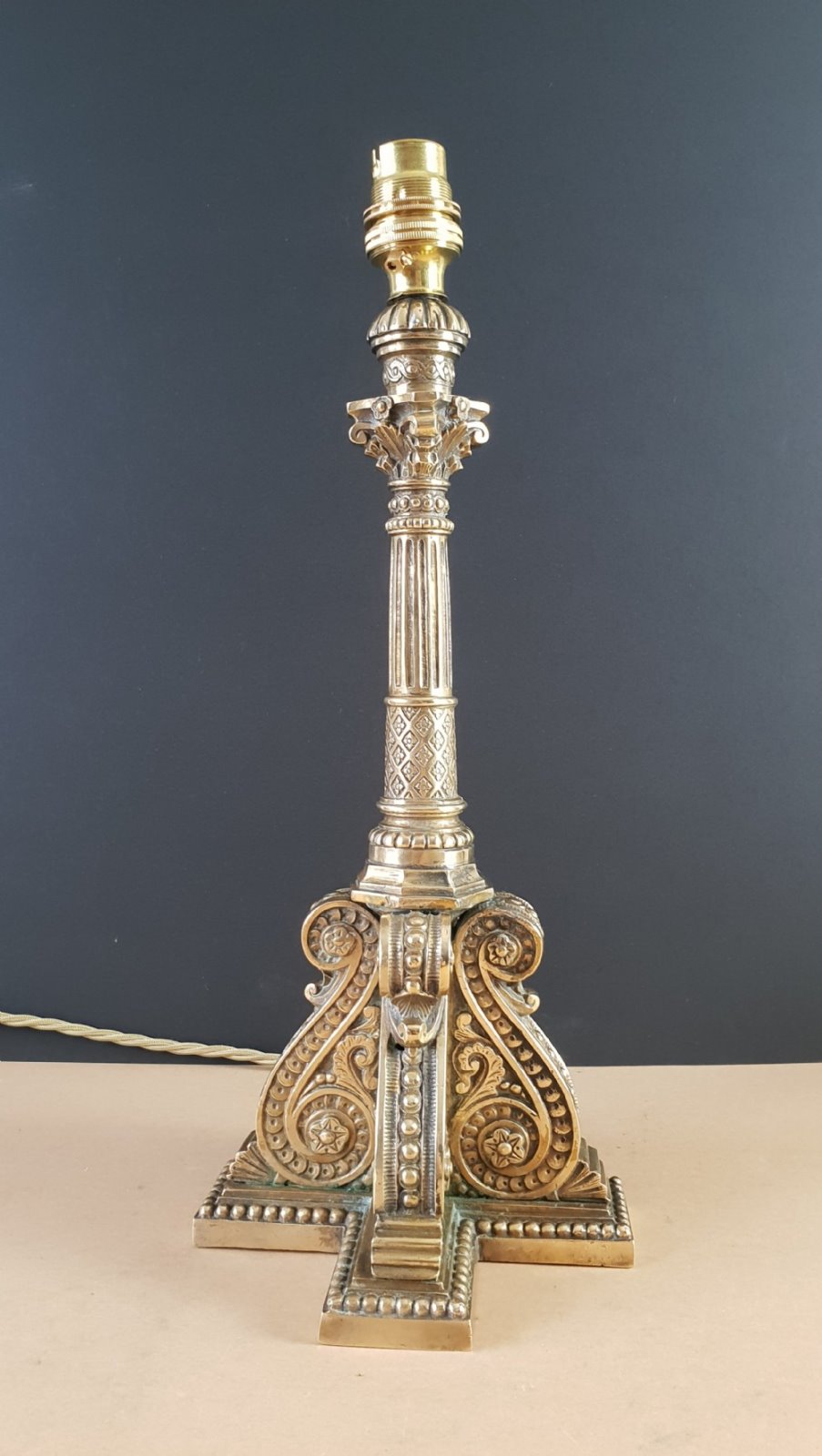 Victorian Decorated Column Brass Table Lamp, Rewired & Pat Tested