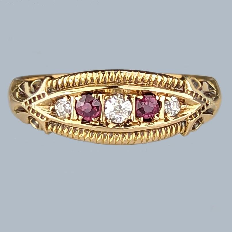 Victorian Diamond & Ruby Ring 18ct Gold Antique Five Stone Ring Hallmarked Birmingham 1900