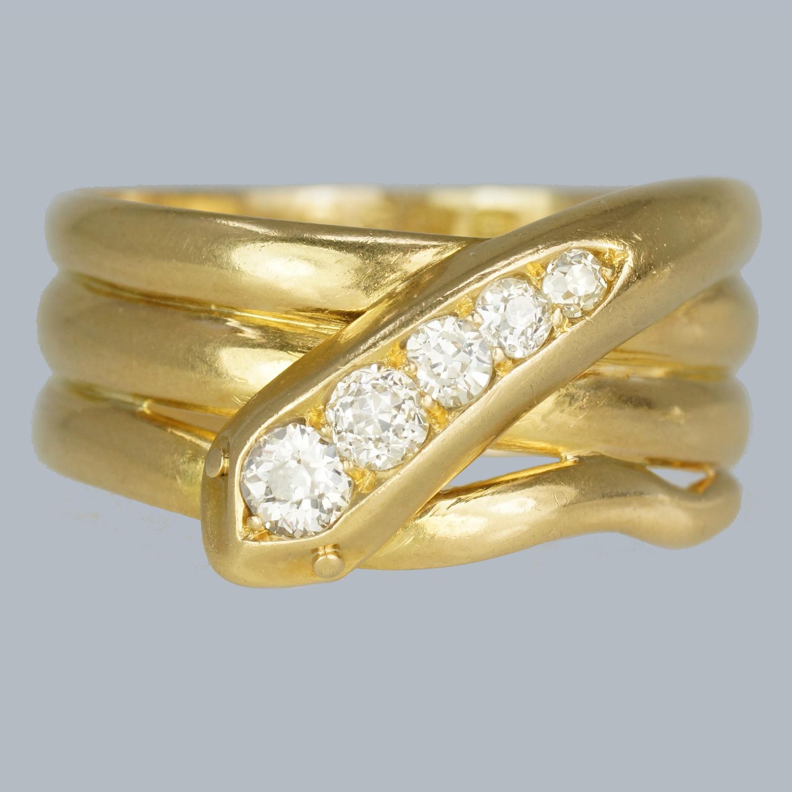 Victorian Diamond Snake Ring 18ct Gold Antique Coiled Serpent Ring Chester 1897