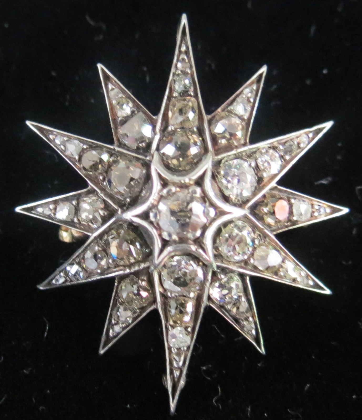 Victorian Diamond Starburst Gold Pendant-Brooch (1 of 8)
