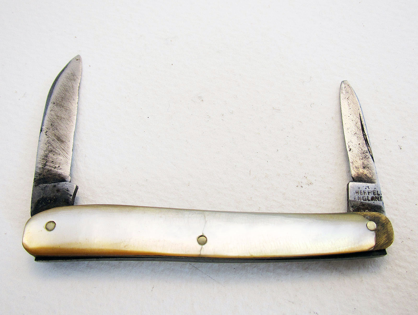 Victorian Double Folding Pocket Mother of Pearl & Carbon Steel Quill Cutter Pen Knife Small Miniature Penknife, Sheffield c.1890