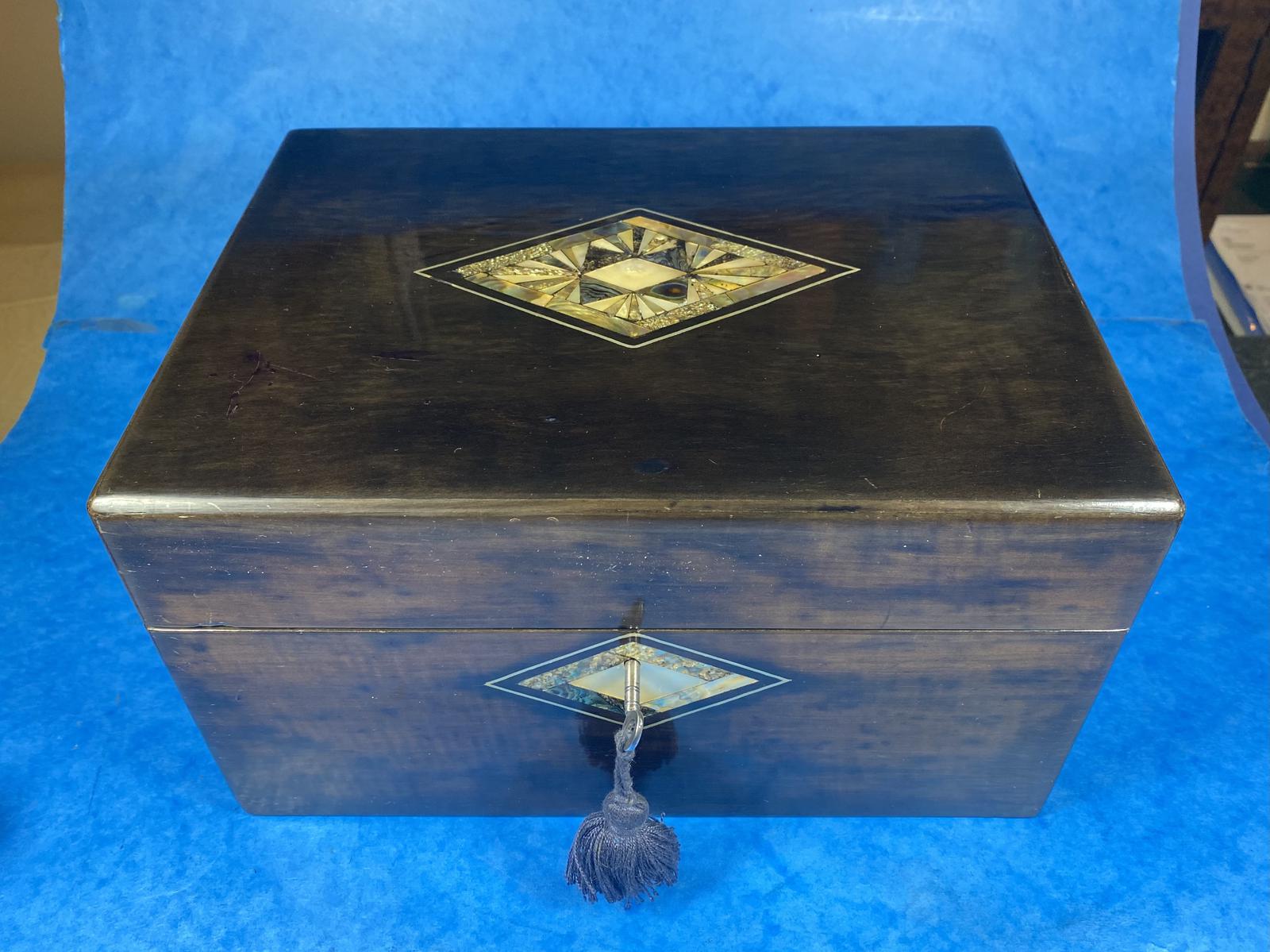 Victorian Ebonised Jewellery Box with Mother of Pearl & Abalone Inlay
