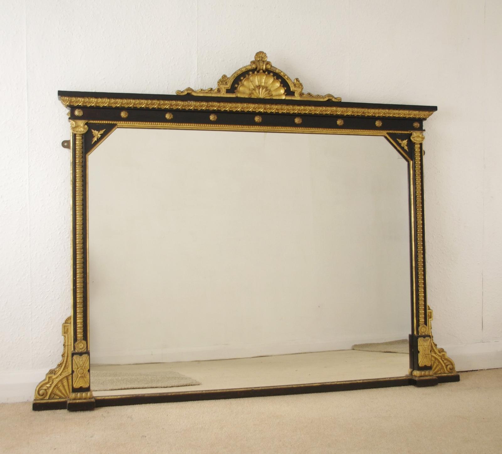 Victorian Ebonised & Parcel-Gilt Overmantle Mirror