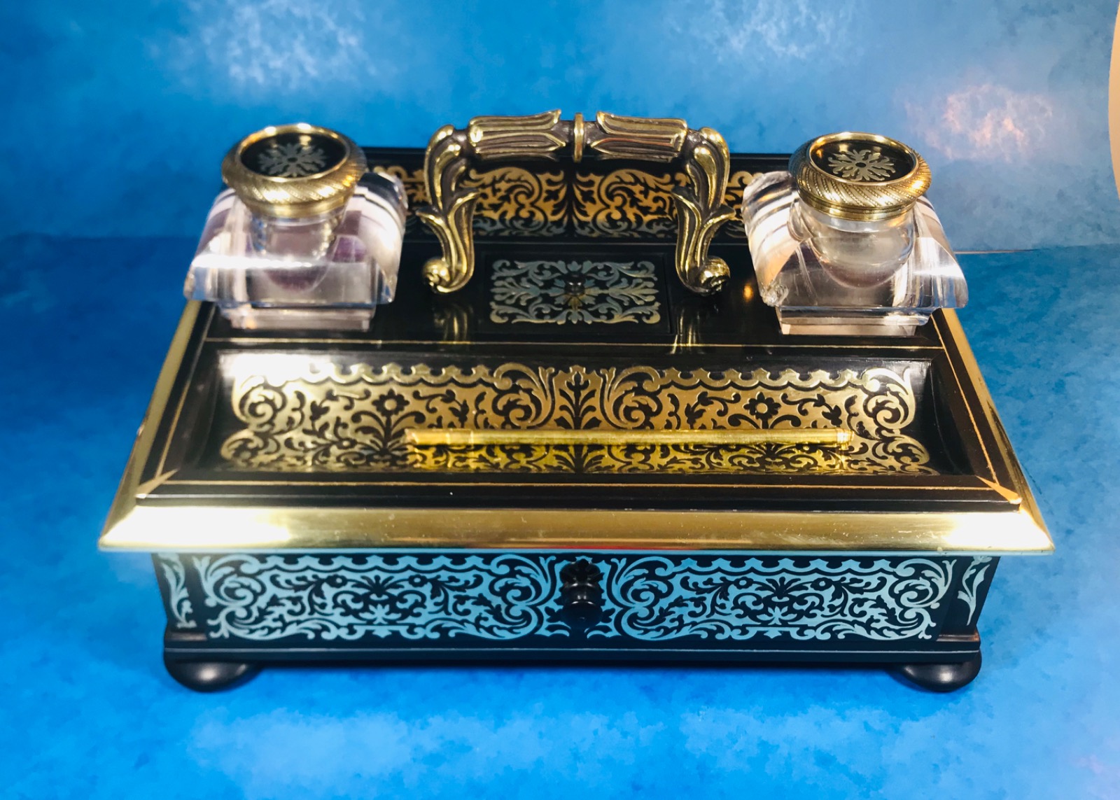 Victorian Ebony & Brass Inlaid ‘Lund’ Desk Inkstand