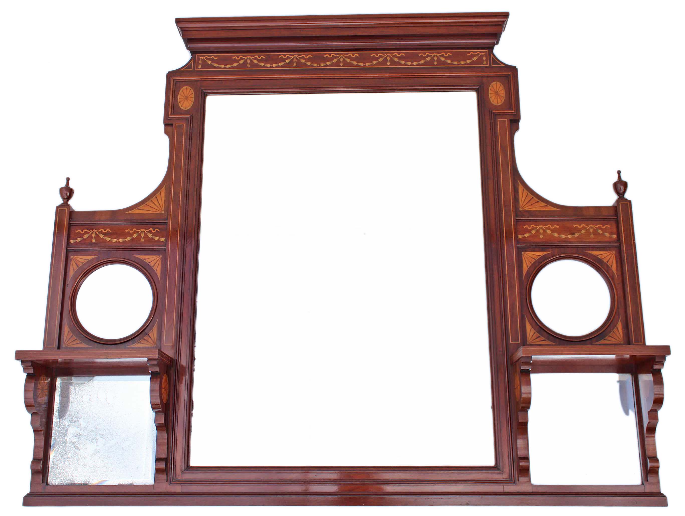 Victorian / Edwardian Inlaid Mahogany Overmantle Wall Mirror