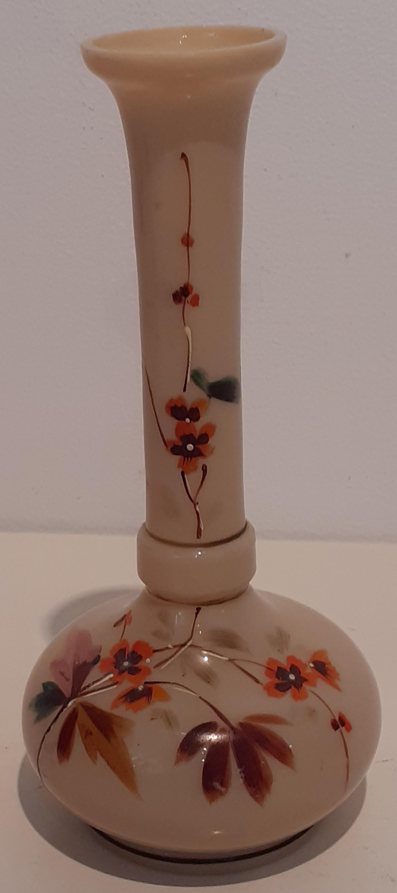 Victorian / Edwardian Opaline Hand Painted Glass Vase