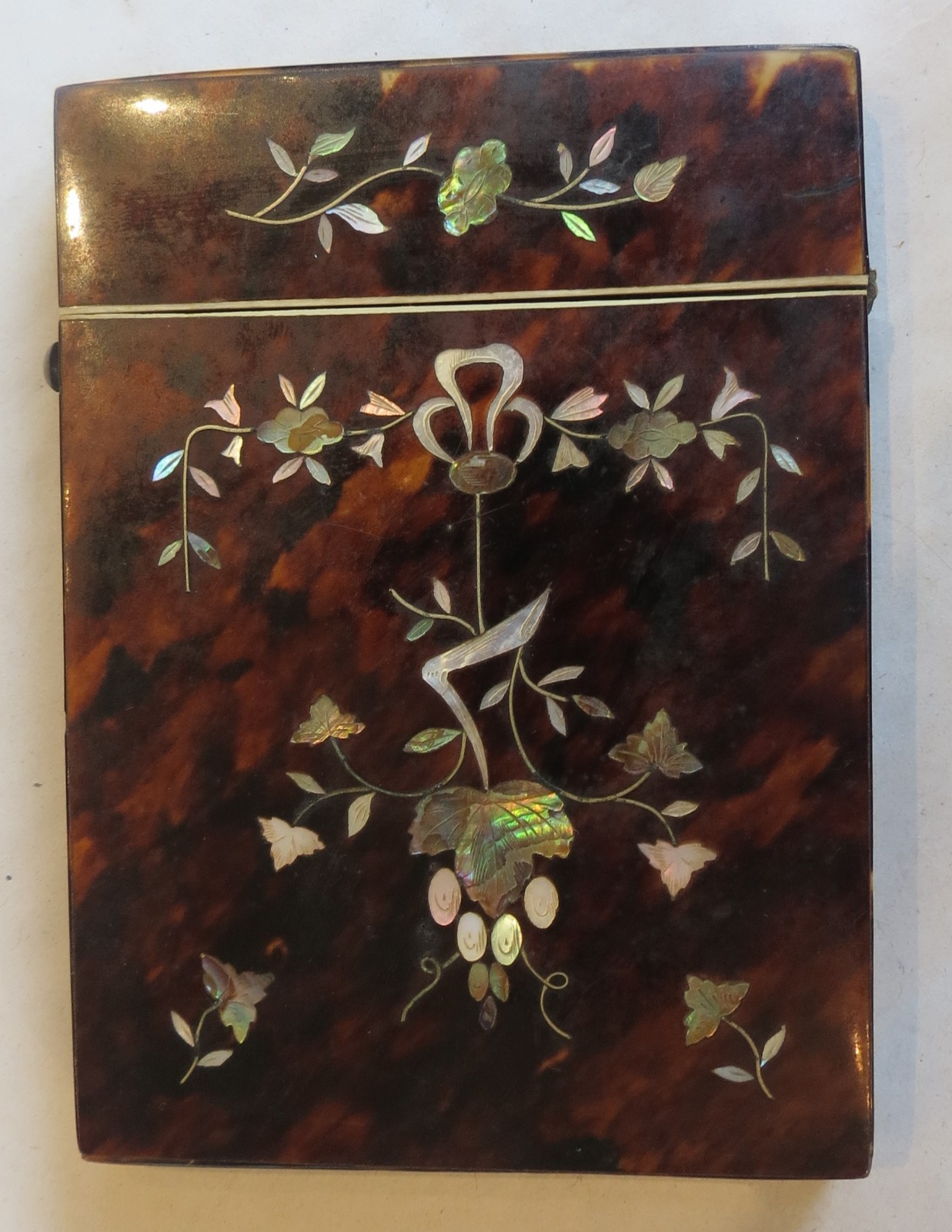 Victorian / Edwardian Tortoiseshell & Mother of Pearl Inlaid Card-Case (1 of 10)