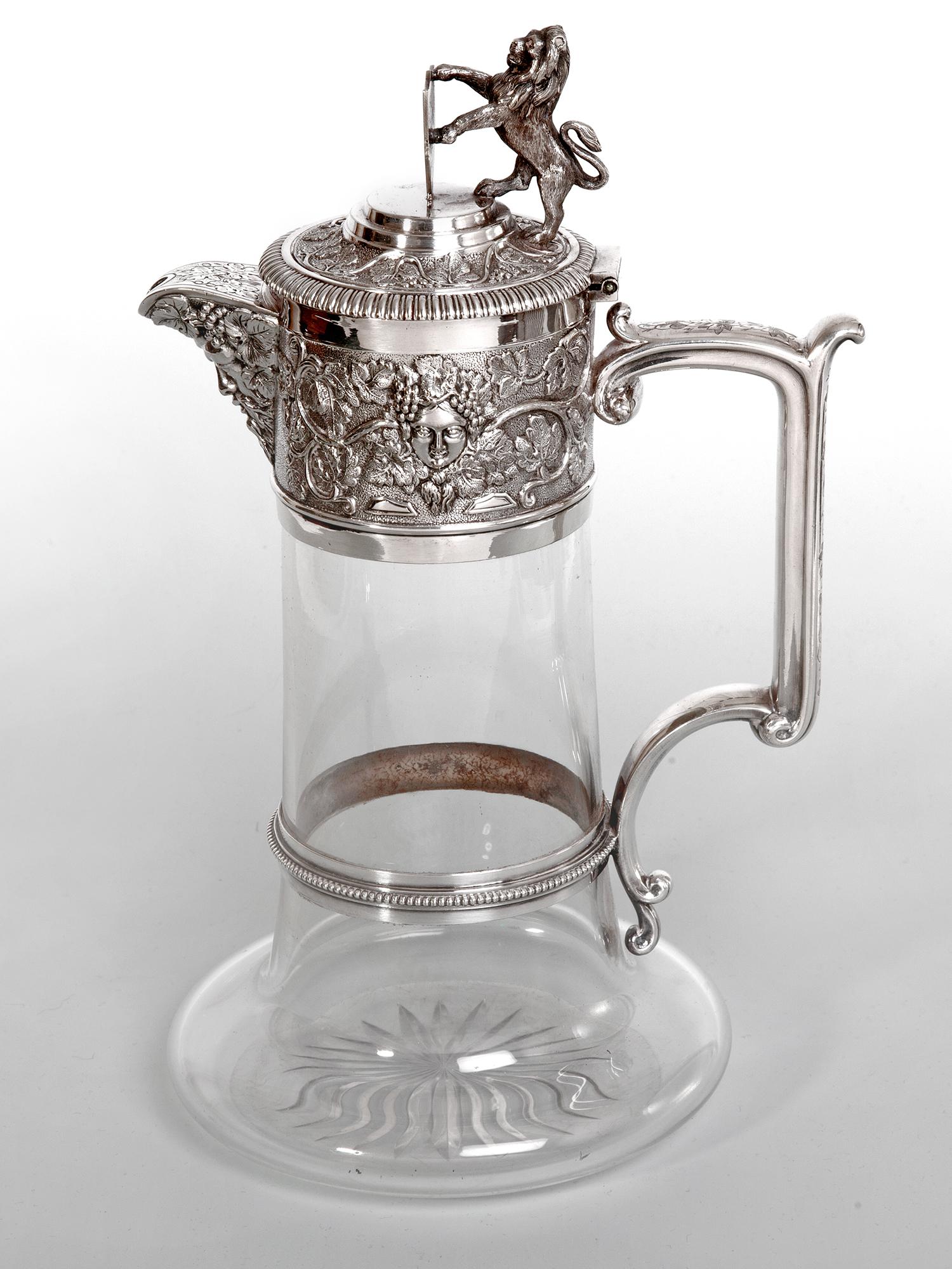 Victorian Elkington & Co Silver Plated and Cut Glass Claret Jug with Bacchus Mask Spout (1 of 8)