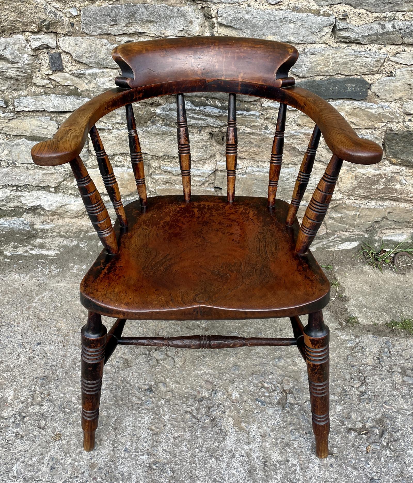Victorian Elm Smokers Bow Armchair by Glenister High Wycombe