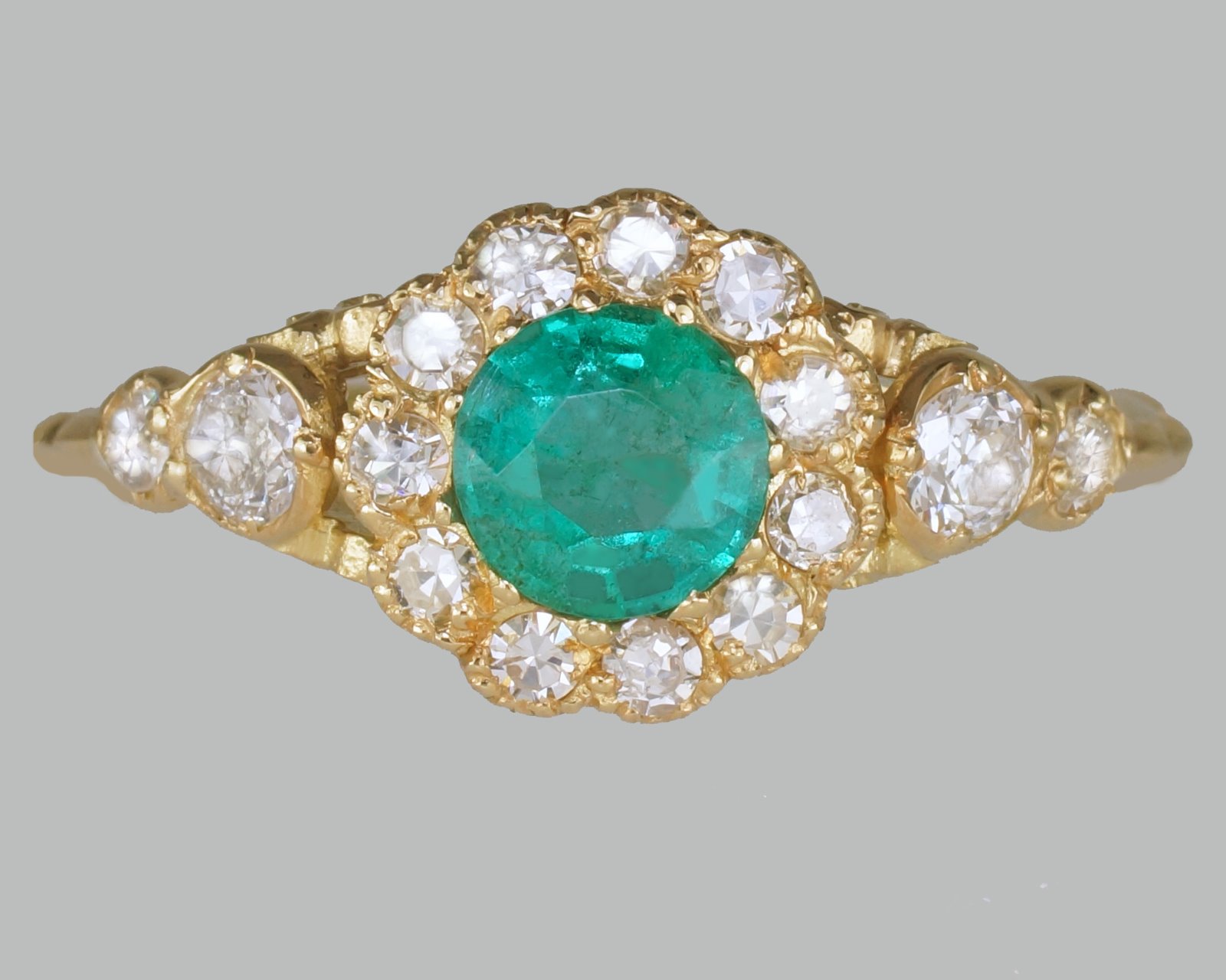 Victorian Emerald & Old Cut Diamond 18ct Gold Antique Cluster Ring C.1890