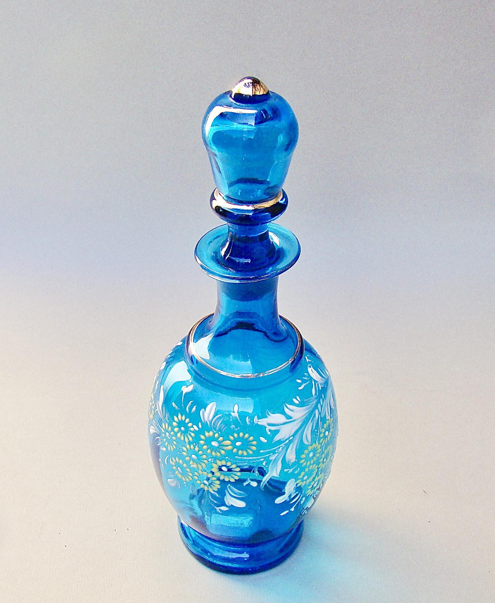 Victorian Enamelled Turquoise Glass Liqueur Decanter c.1890