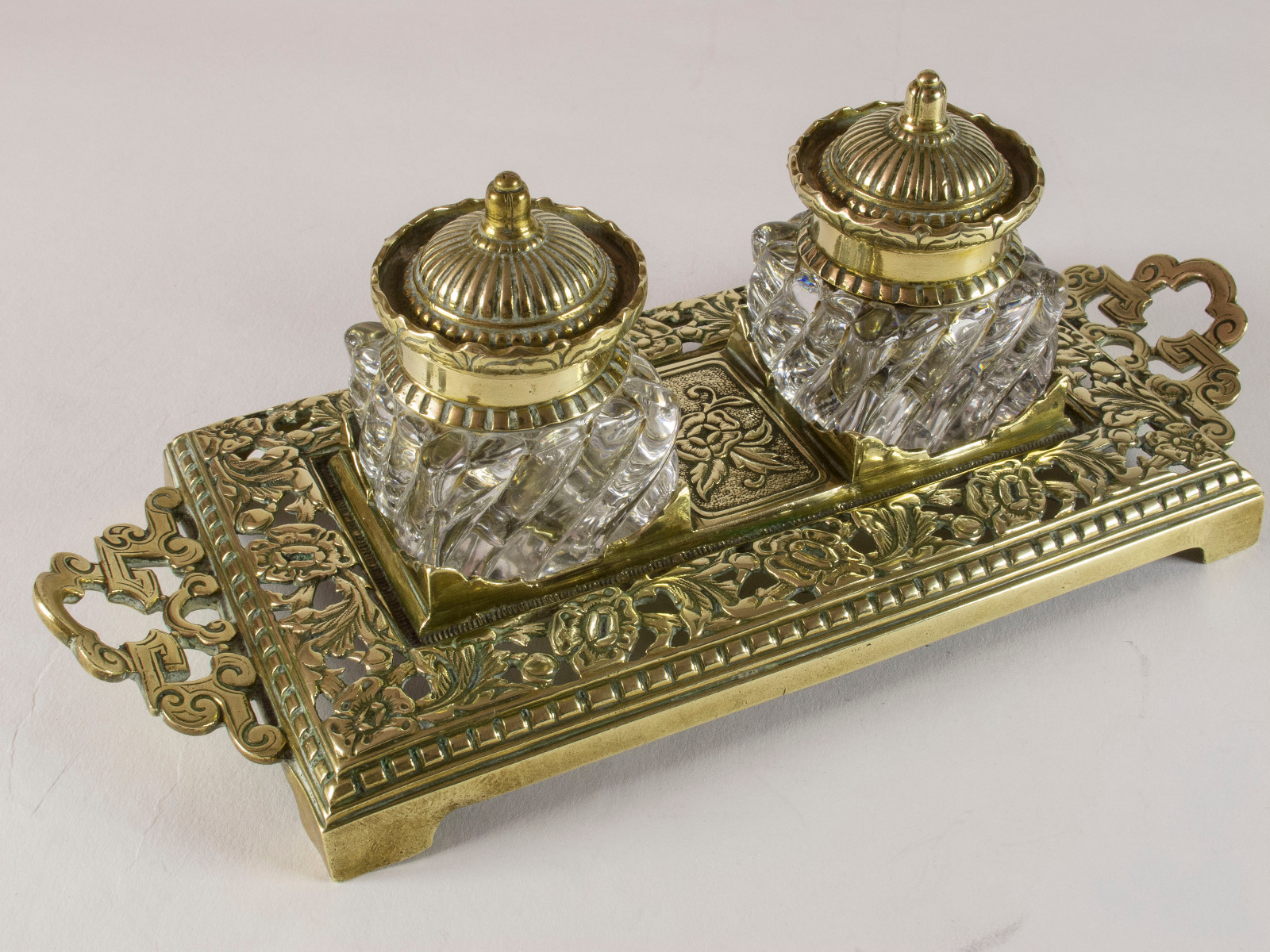 Victorian English Brass Double Inkstand