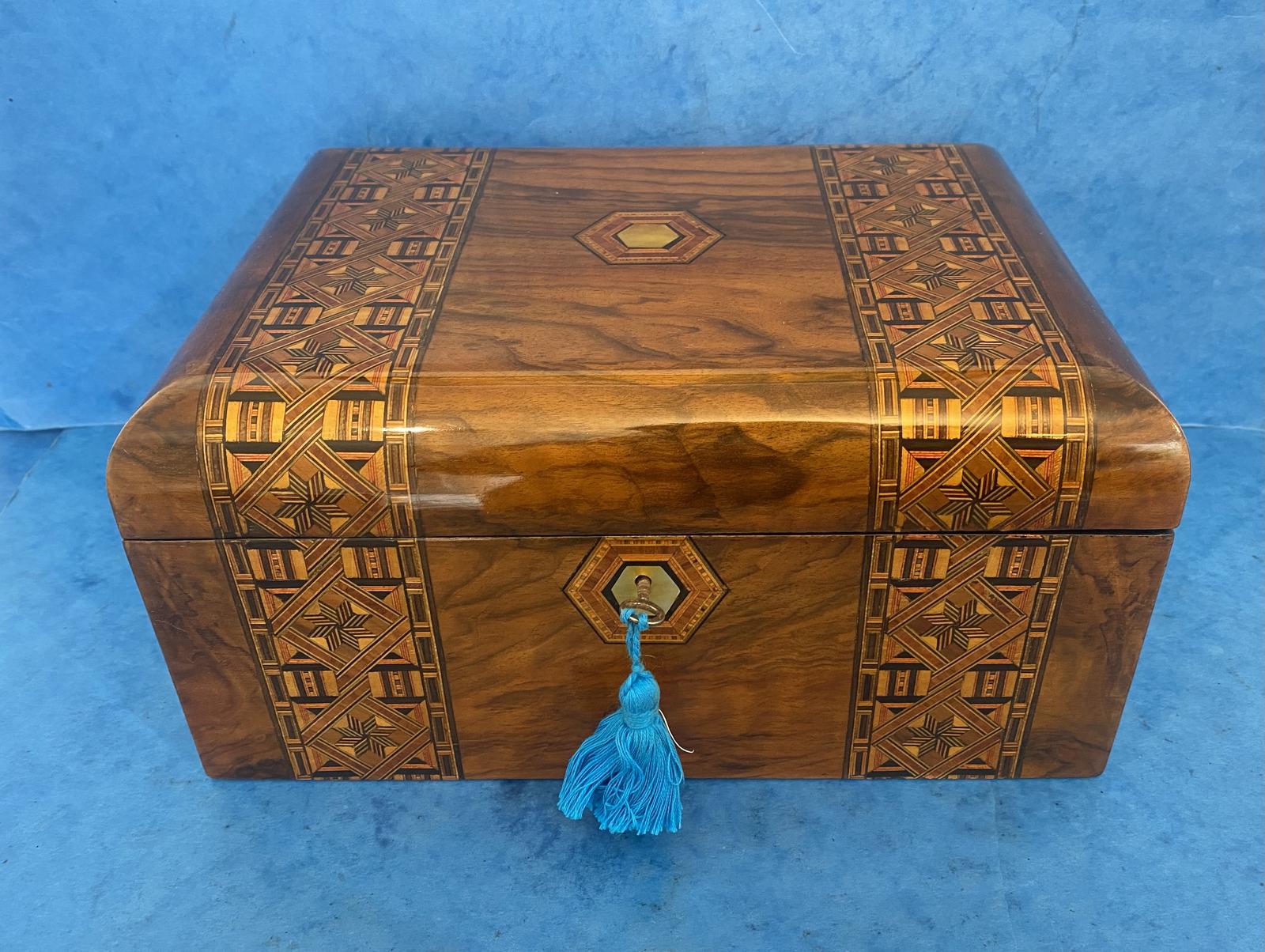 Victorian Envelope Top Walnut & Tunbridge Ware Jewellery Box
