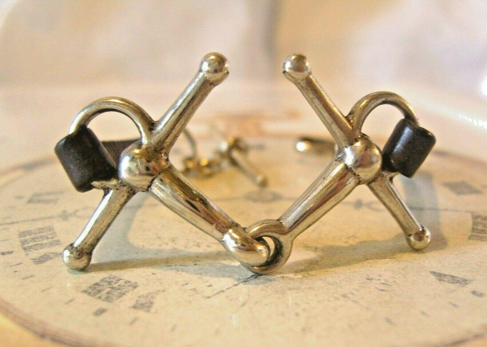 Victorian Equestrain Pocket Watch Chain 1890s Antique Steel & Leather Albert with Snaffle Bit