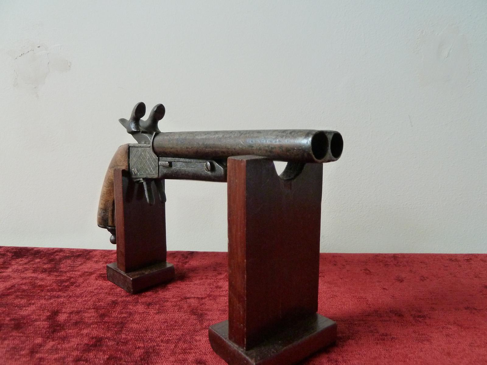 This Victorian Era Double Barrel Rimfire Pistol is located in Lancashire, United Kingdom