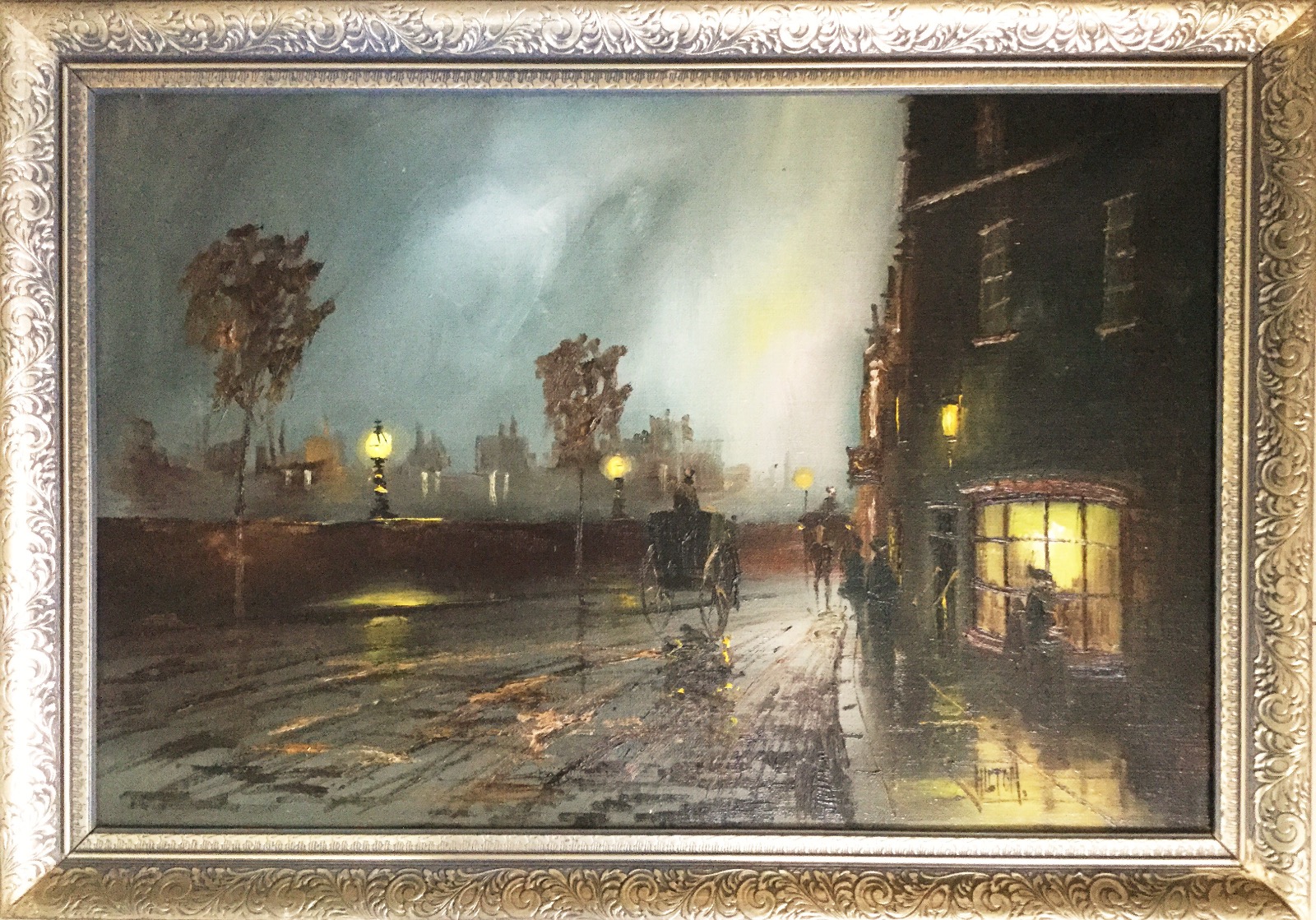 Victorian Era Moonlit Street Scene On a RAiny Evening Near London Bridge with Horse & Carriage (1 of 1)