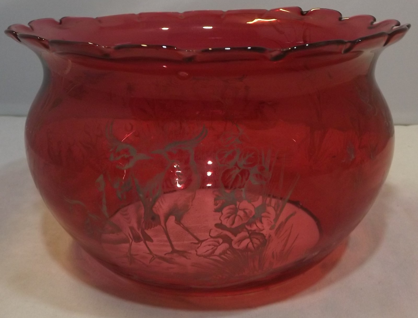 Victorian Etched Cranberry Glass Lamp Shade c.1890