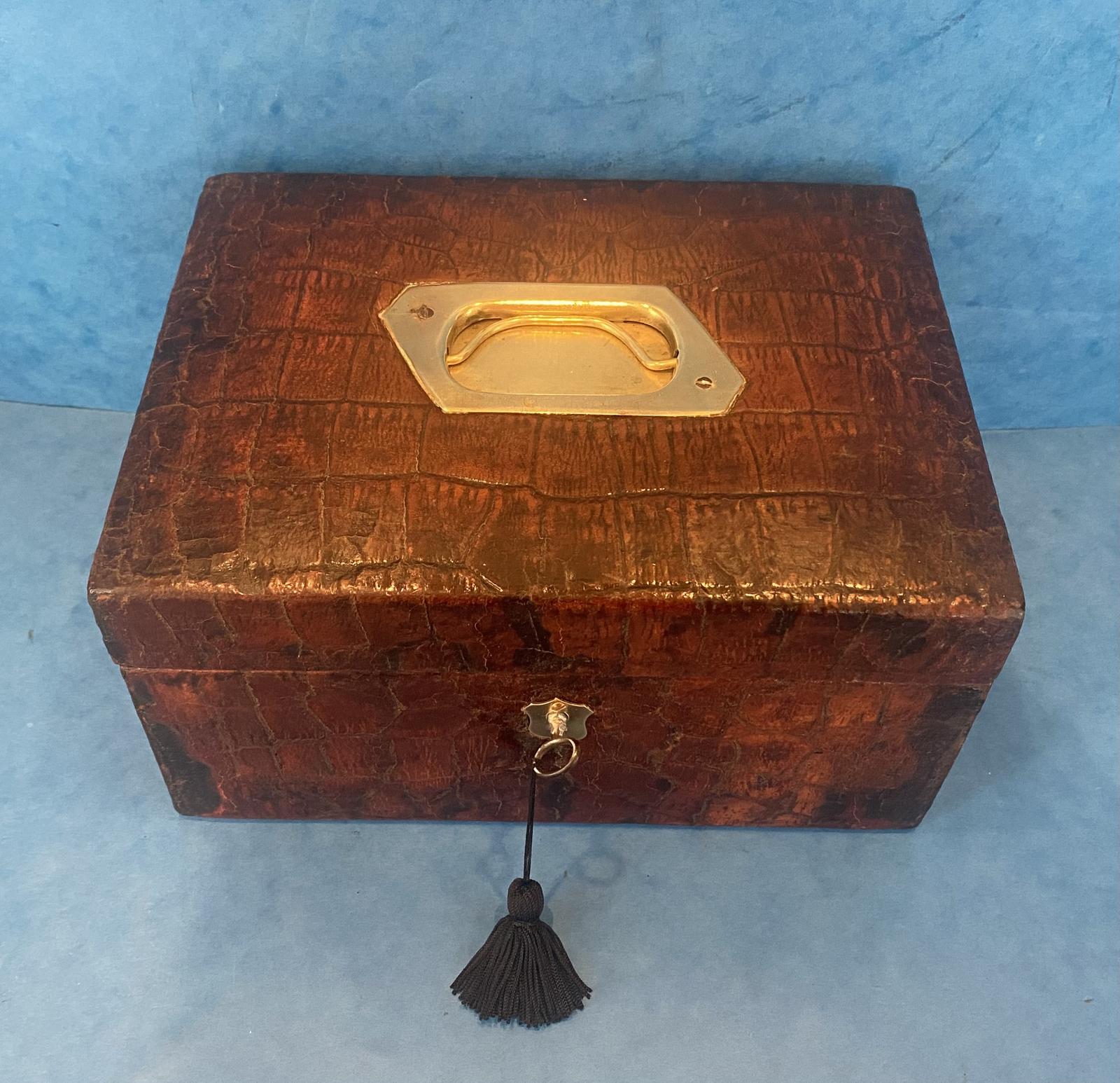 Victorian Faux Leather Crocodile Fitted Jewellery Box