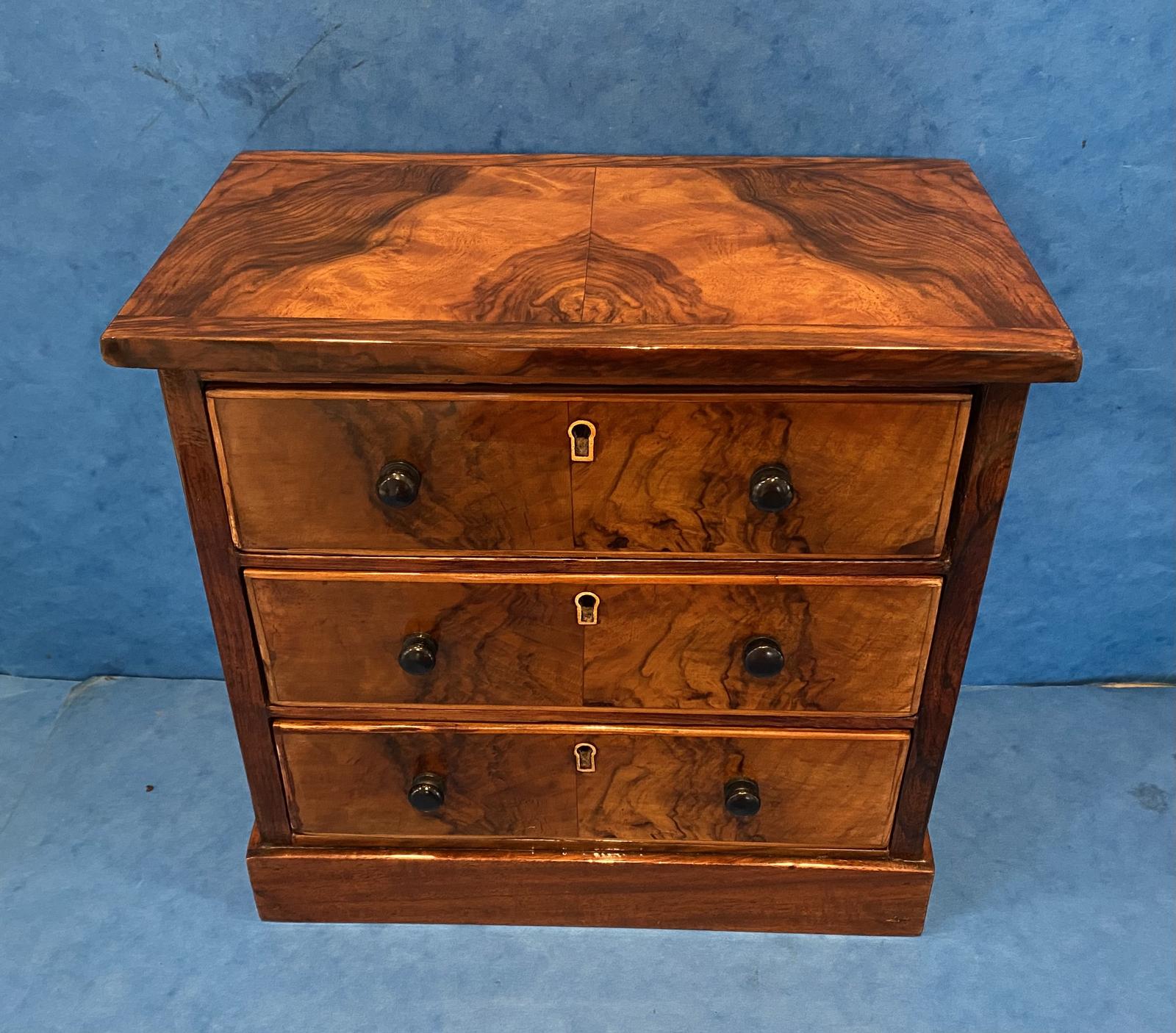 Victorian Figured Walnut & Rosewood Miniature Chest of Drawers