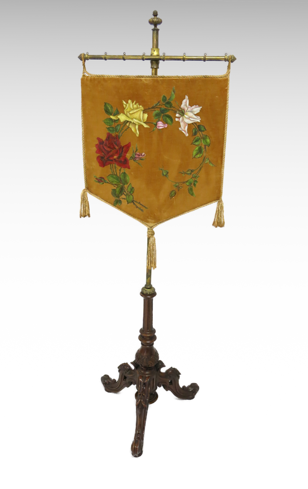 Victorian Fire - Pole Screen with Heavily Carved Ornate Base