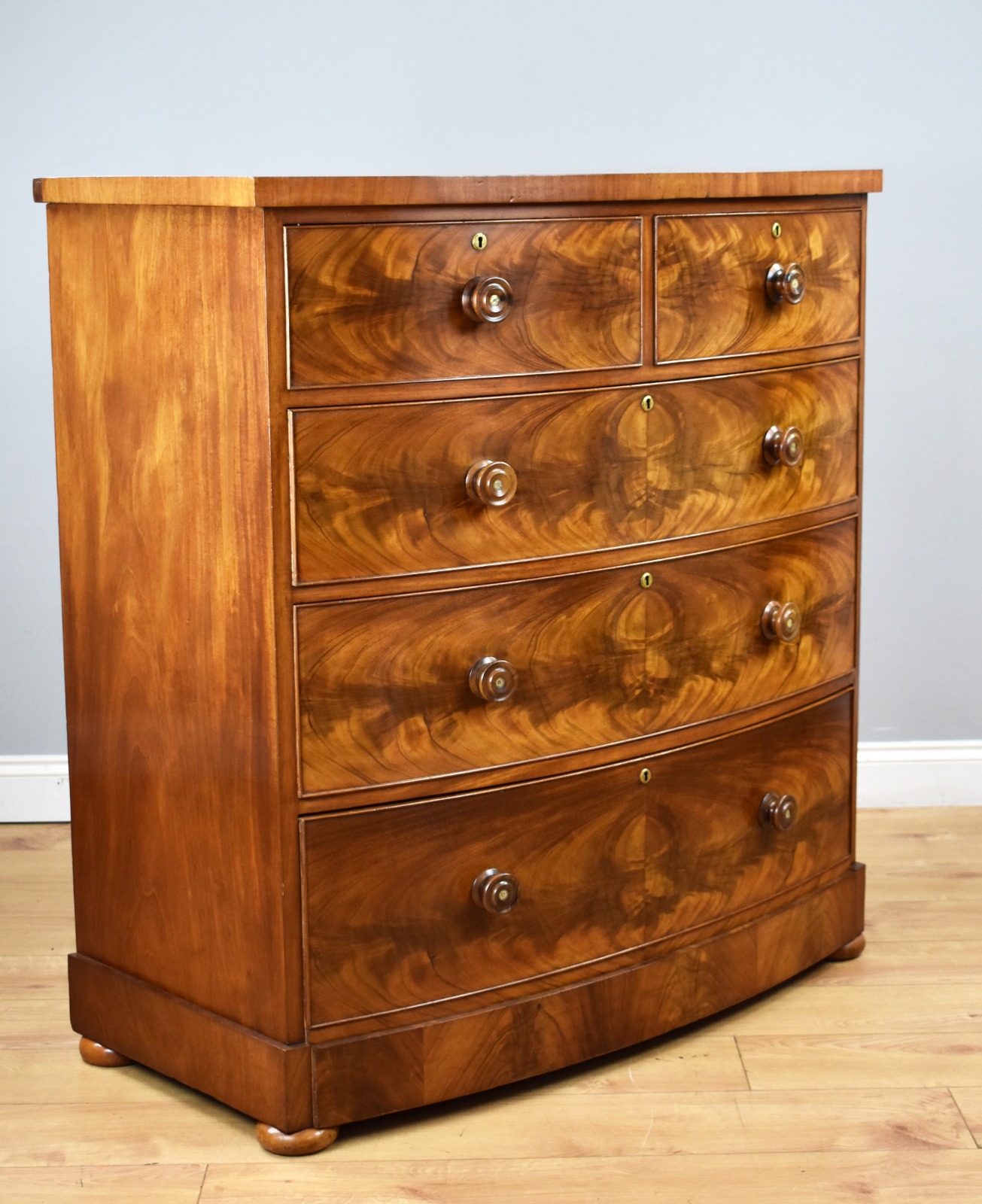 Victorian Flame Mahogany Bow Front Chest of Drawers