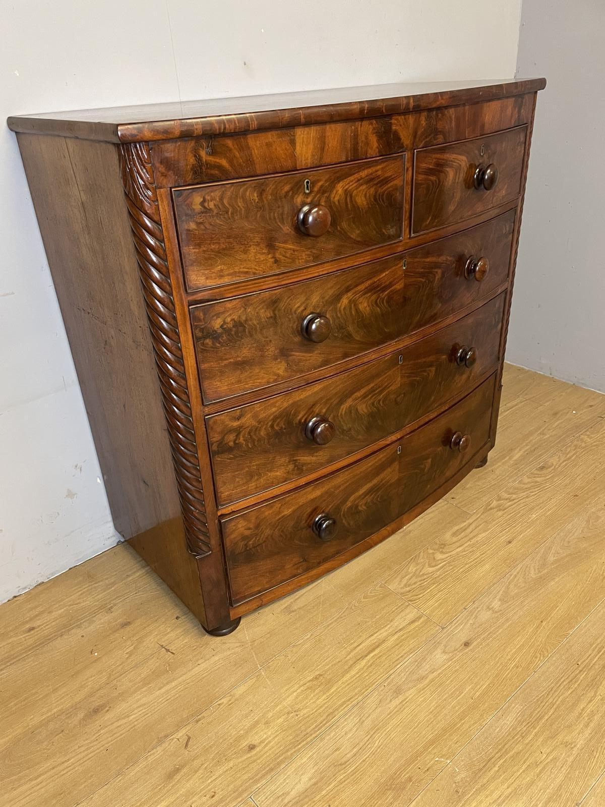 Victorian Flame Mahogany Bow Front Chest of Drawers Circa 1870
