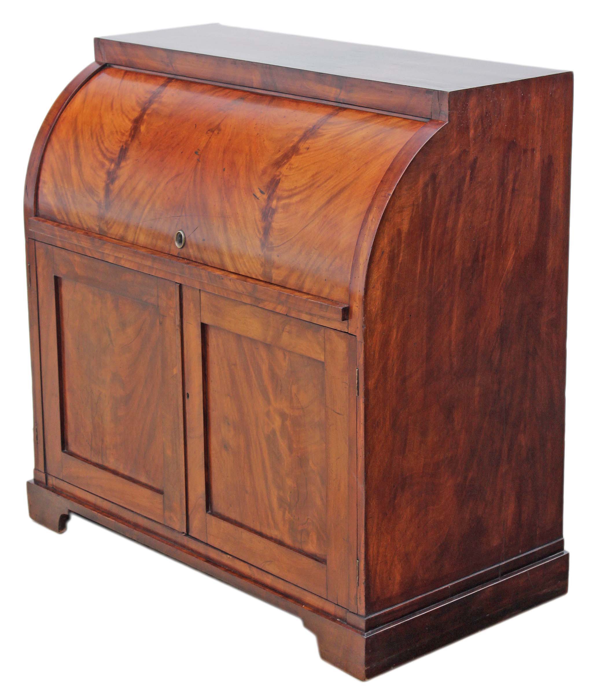 Victorian Flame Mahogany Cylinder Bureau Desk