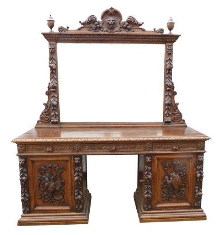 Victorian Flemish Carved Oak Mirrorback Sideboard
