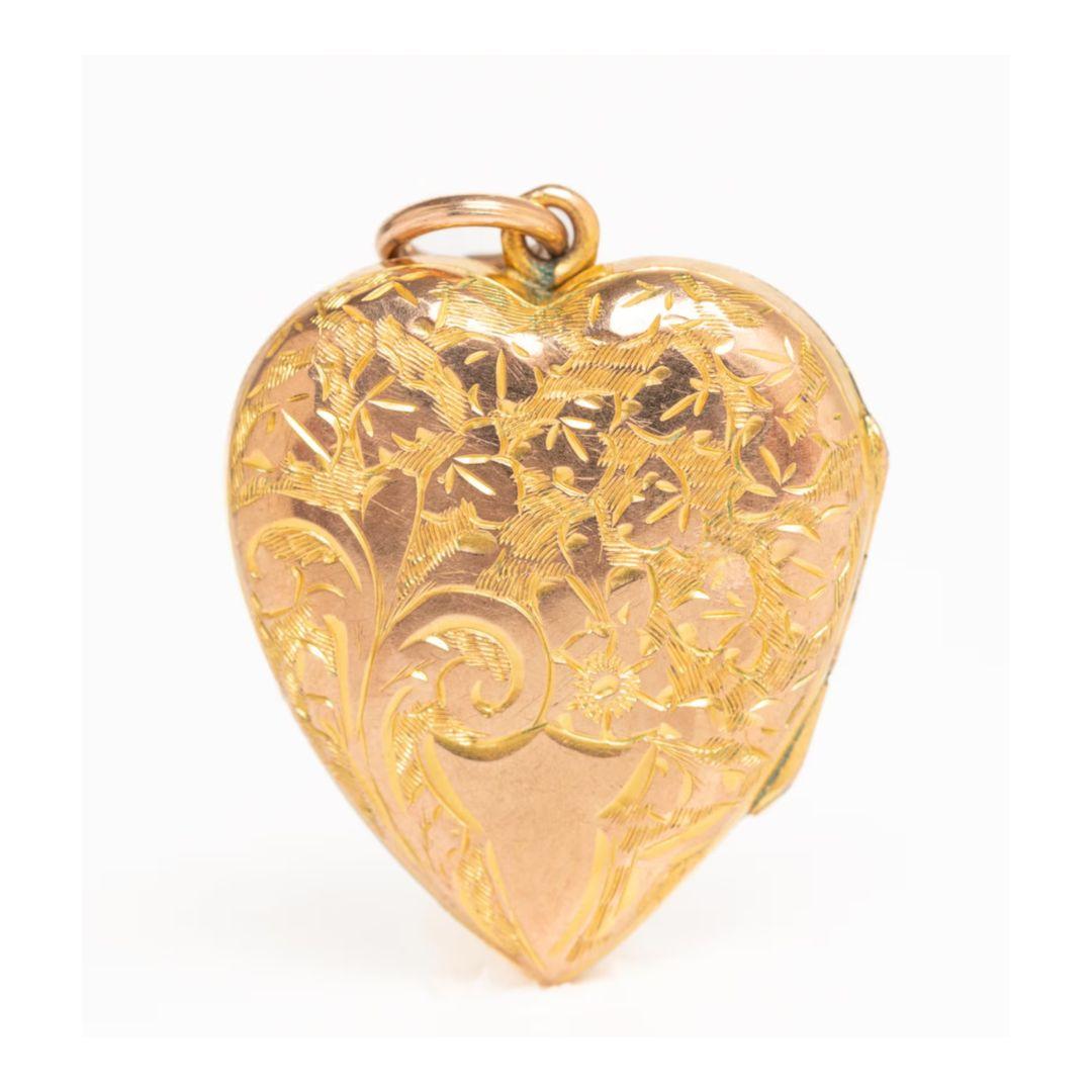 Victorian Floral 9ct Gold Front & Back Heart Locket