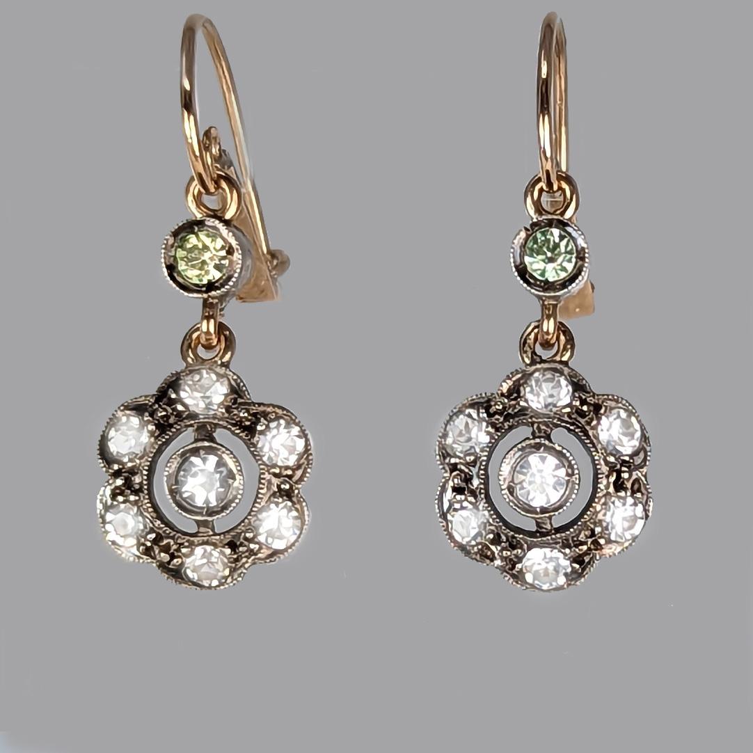 Victorian Floral Dangle Earrings 15ct Gold & Silver Antique Paste Hook Earrings