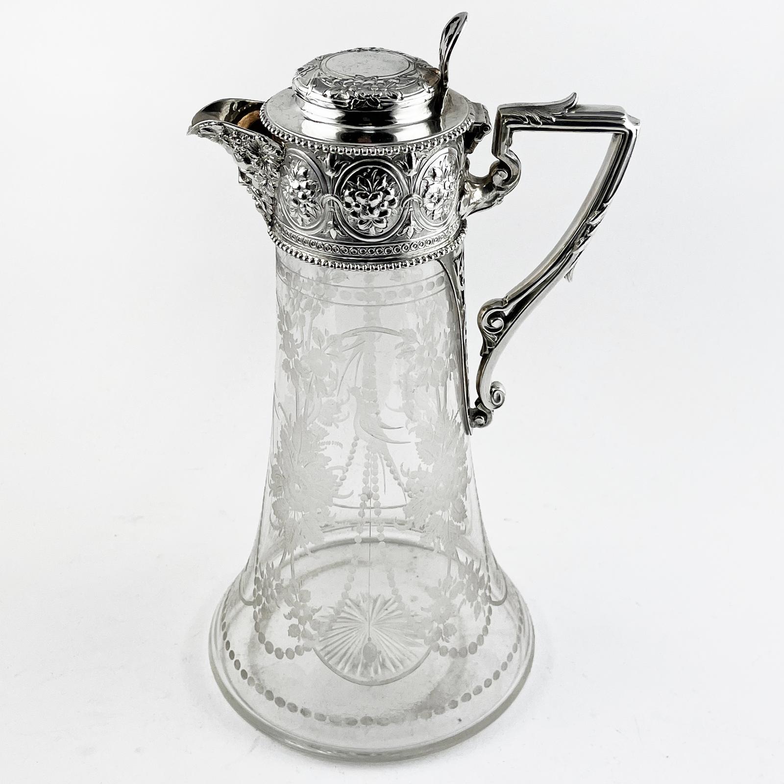 Victorian Floral Engraved Sterling Silver Claret Jug
