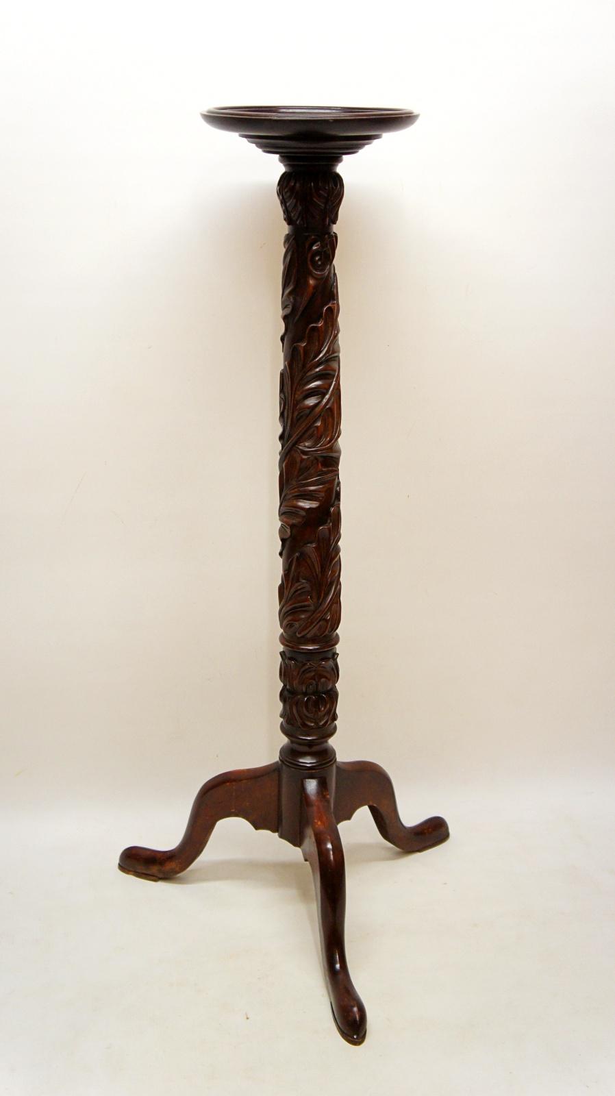 Victorian Foliate Carved Mahogany Torchiere, Plant Stand