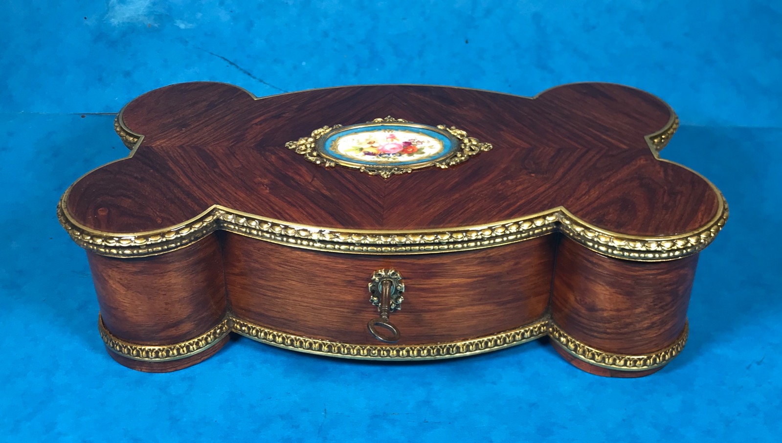 Victorian French Shaped Tulipwood Box with Porcelain Panel to the Top