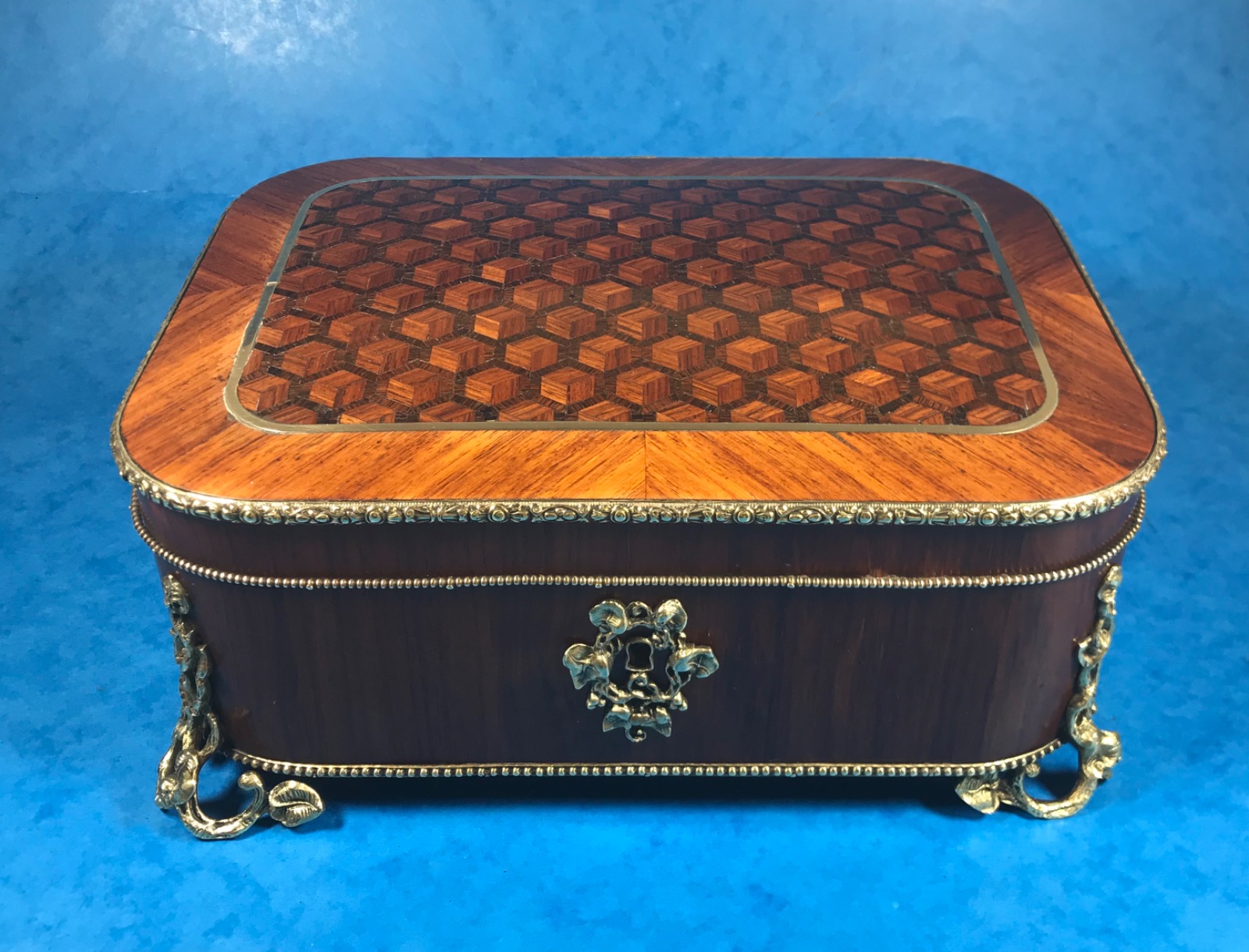Victorian French Tulipwood Box with Rosewood & Kingwood Inlay