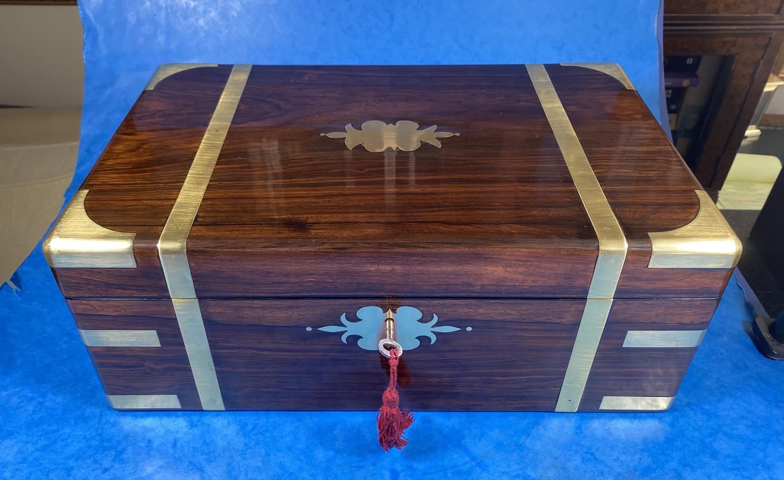 Victorian Full Brassbound Rosewood Writing Slope