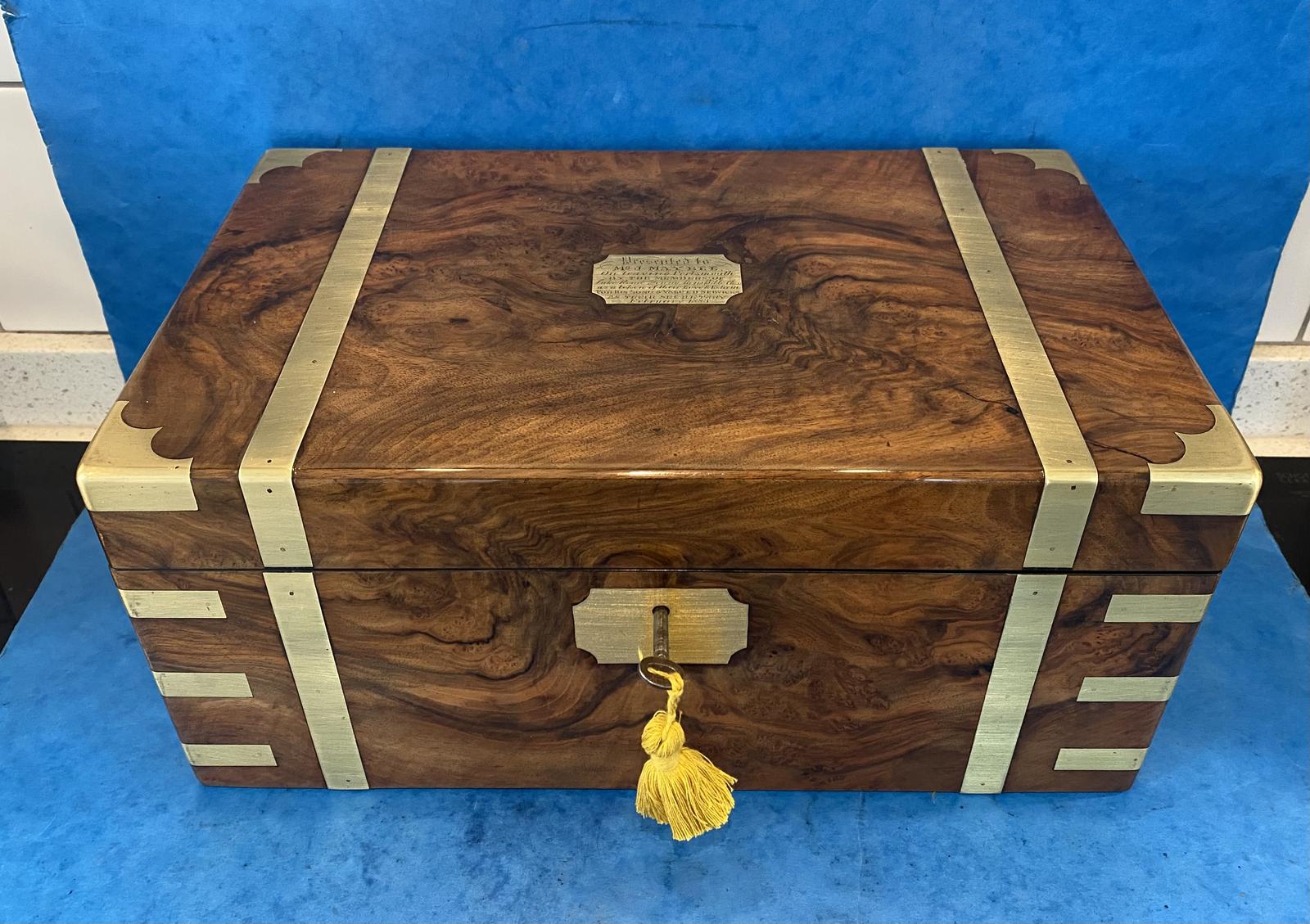 Victorian Full Brassbound Well Figured Walnut Writing Slope, with Secret Drawers