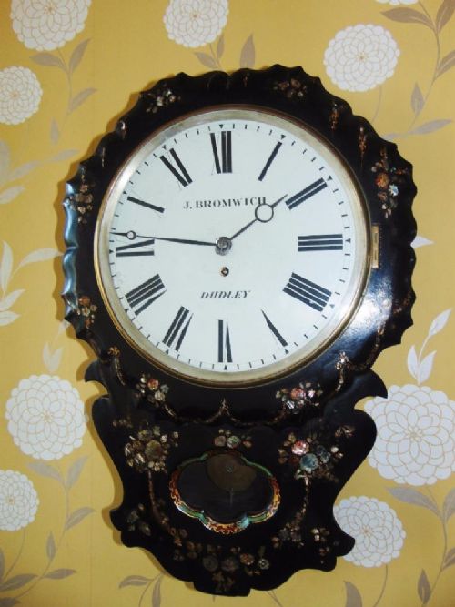 Victorian Fusee Papier Mache & Mother of Pearl Wall Clock, J. Bromwich Dudley (1 of 1)