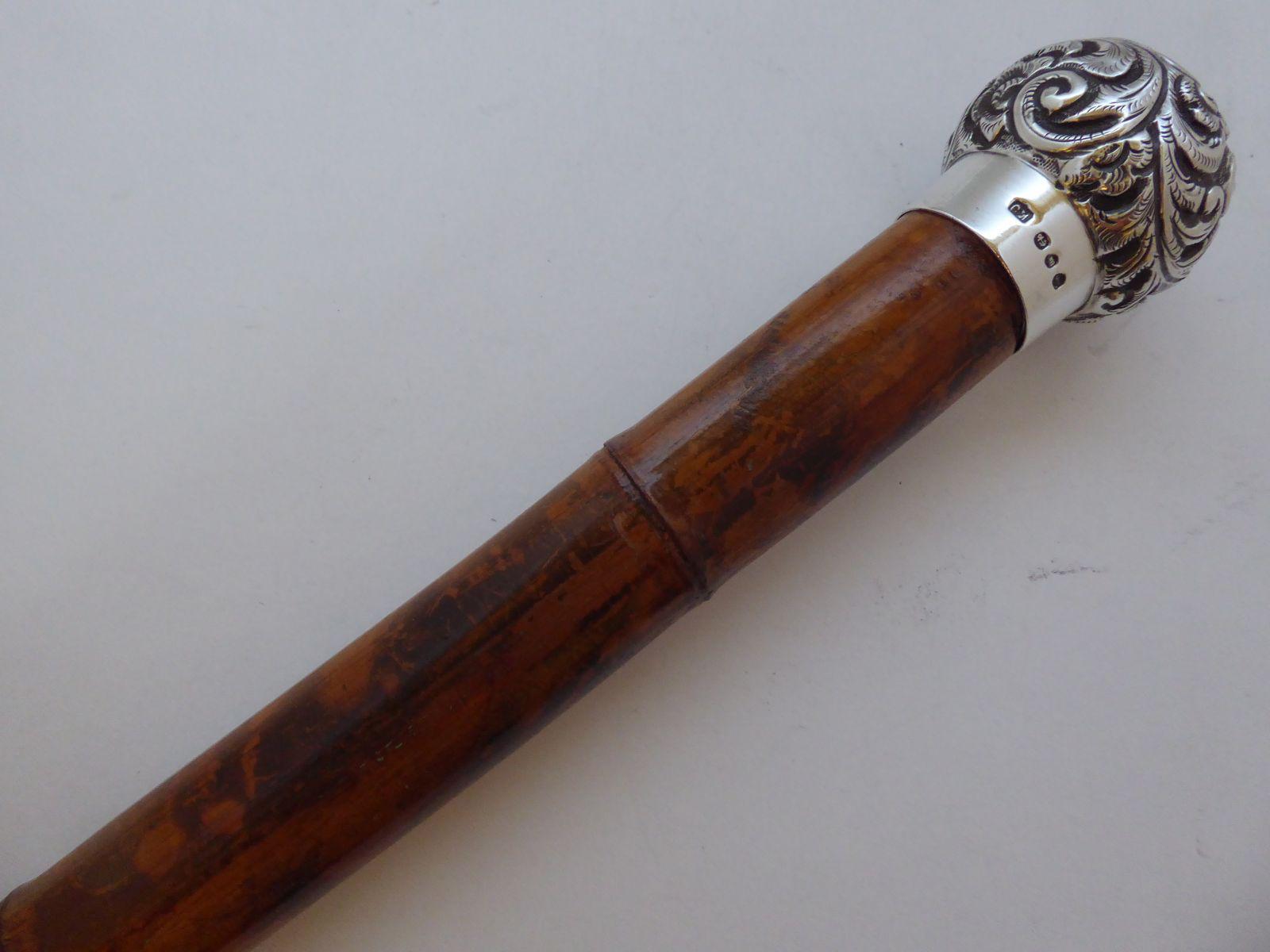 Victorian Gadget Walking Stick 1896 Silver Pommel Bamboo Shaft Hidden Bottle