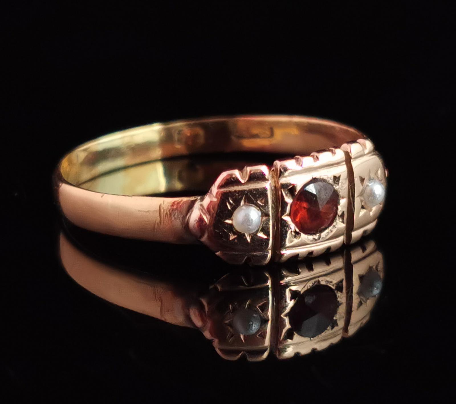 Victorian Garnet & Pearl Ring, 9ct Gold
