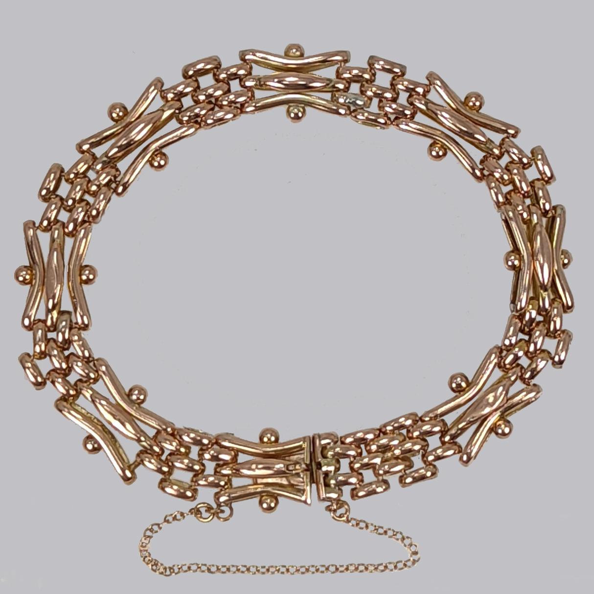 Victorian Gate-link Bracelet 9ct Gold Antique Fancy Three Bar & Mesh Bracelet c.1890