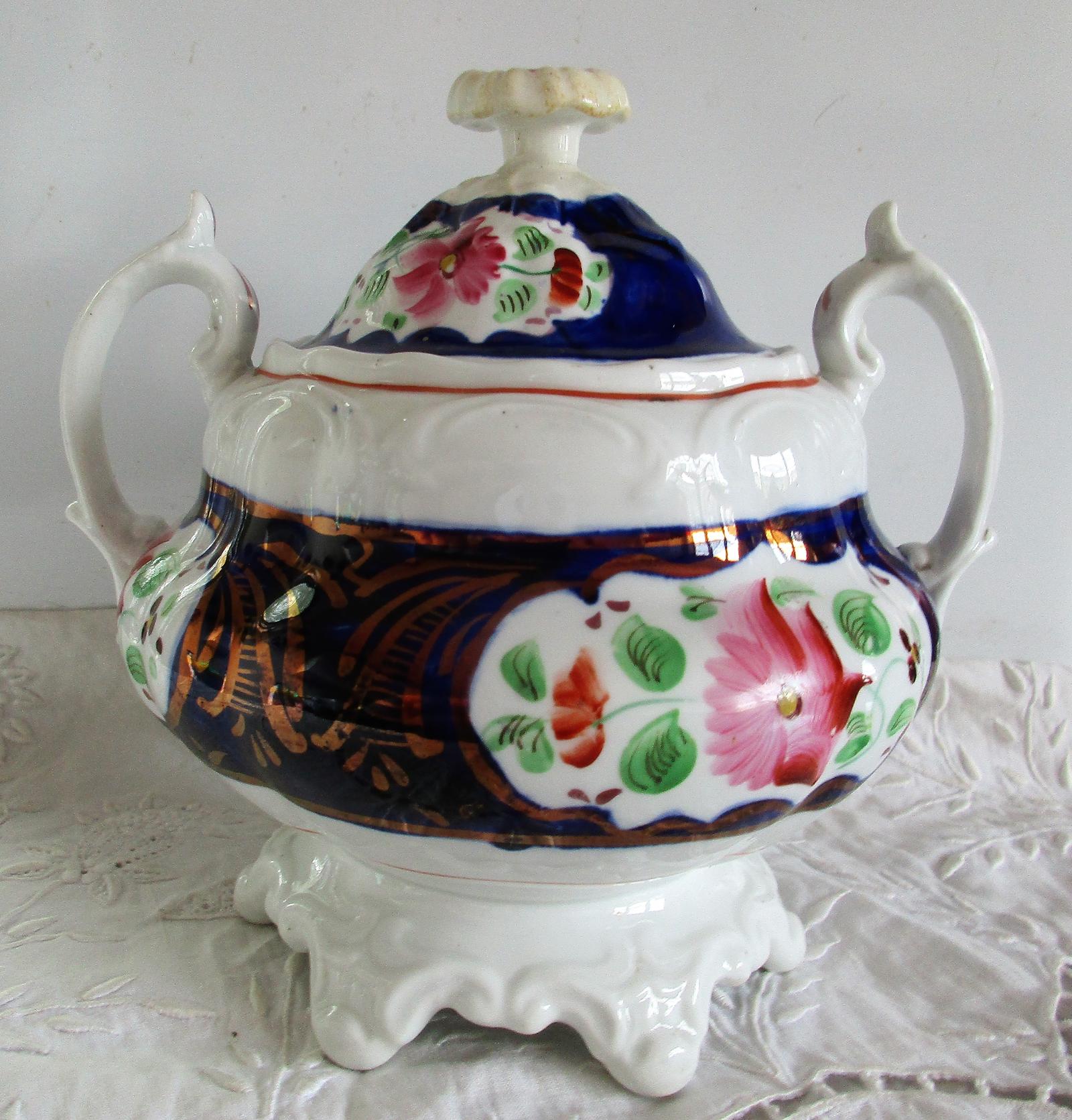 Victorian Gaudy Welsh "Columbine" Sucrier & Cover