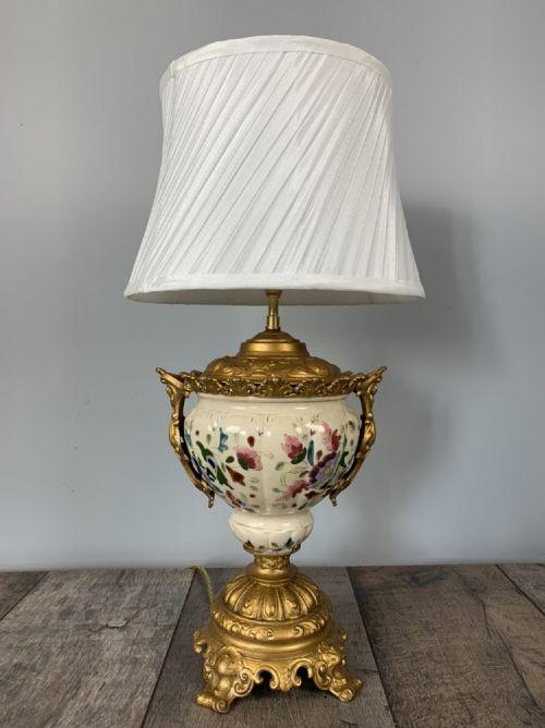 Victorian Gilded Spelter & Ceramic Table Lamp, Rewired & Pat Tested, Shade Included