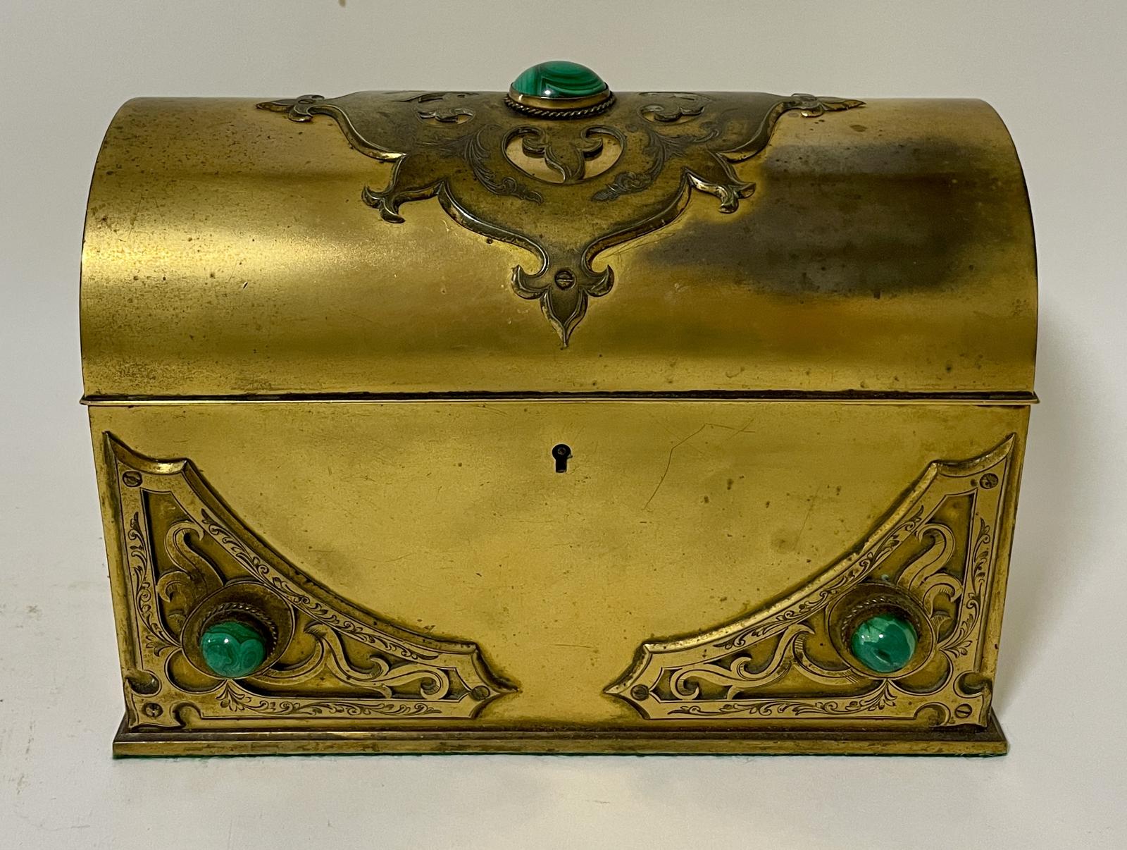 Victorian Gilt Brass Casket with Malachite Cabochons