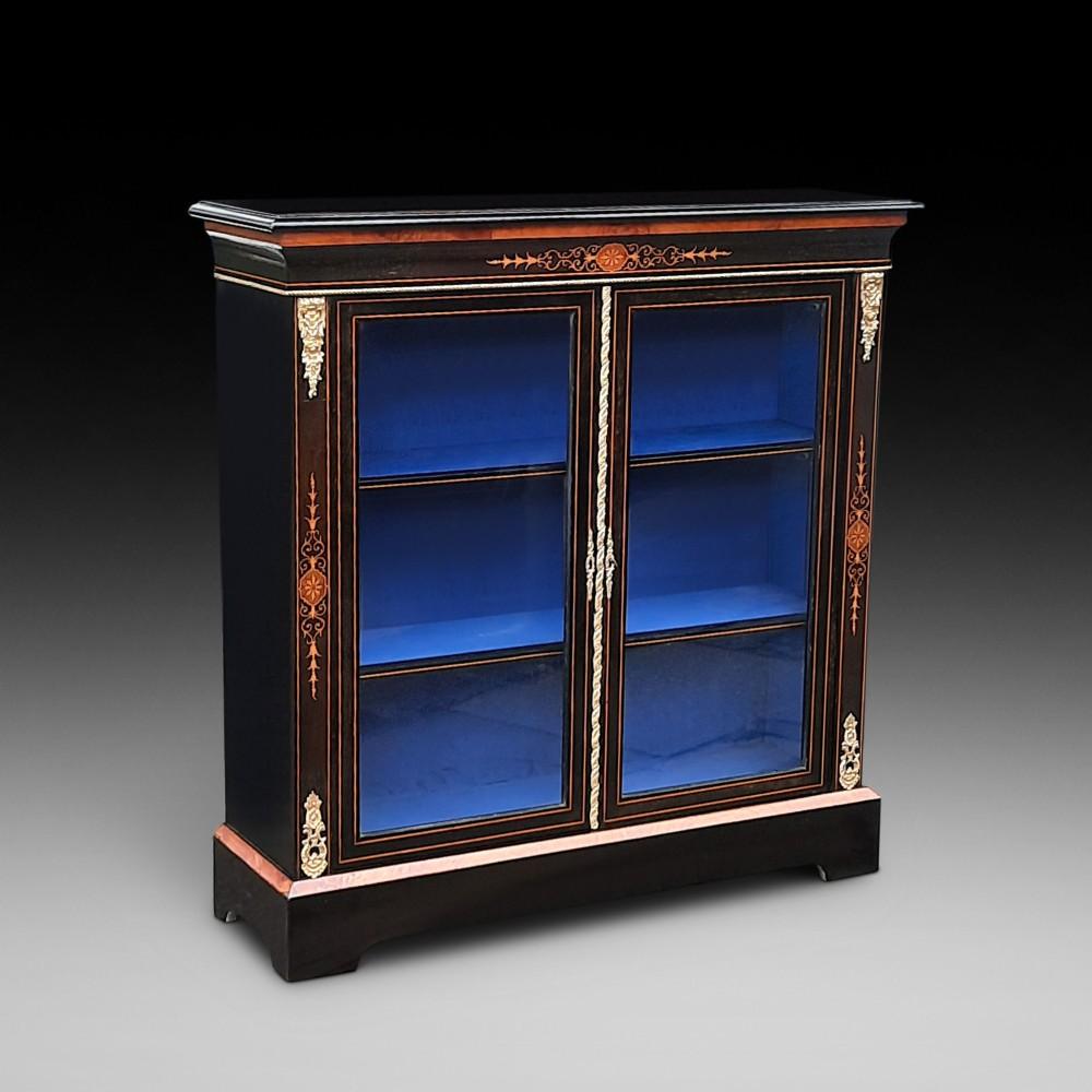 Victorian Gilt Metal Mounted Ebonised & Marquetry Pier Display Cabinet