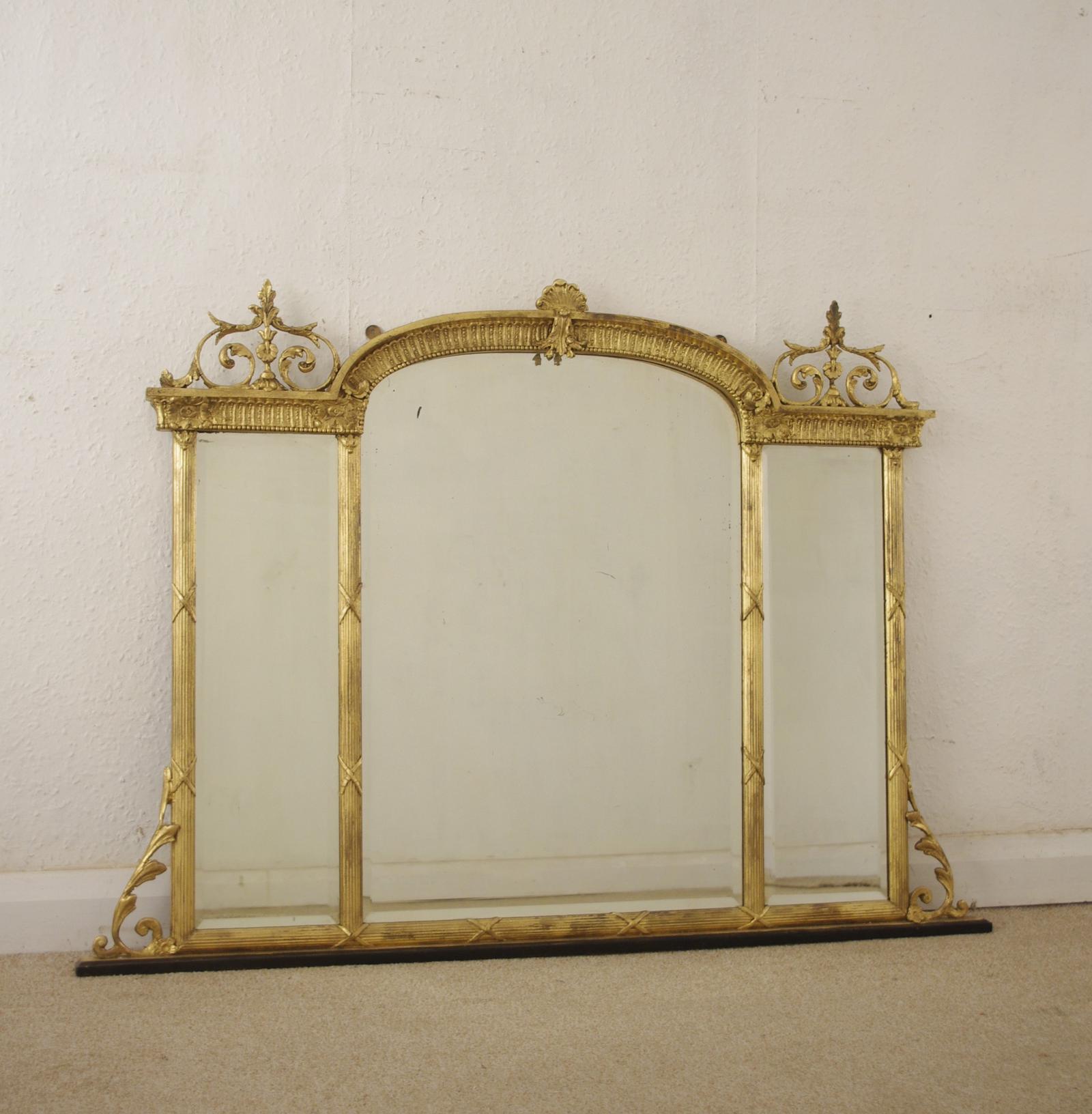 Victorian Gilt Triple Plate Overmantle Mirror